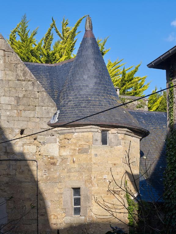 "... une maison située rue Colvestre donnant sur la rue, une petite boutique à cheminée... En la boutique..., le mur du couchant mitoyen, celui du pignon nord entier, où il y a une ouverture de porte et fenêtre..., l'autre côté en terrasse enduit, derrière un petit cellier ayant mur mitoyen du couchant, du nord et levant éclairé d'un jour... Pour monter au premier degré, un escalier de bois, une chambre à une cheminée de bois ayant deux ouvertures de fenêtres, le grenier au-dessus terrassé et barrassé... sous couverture d'ardoise. Bout au nord de la dite chambre des commodités.