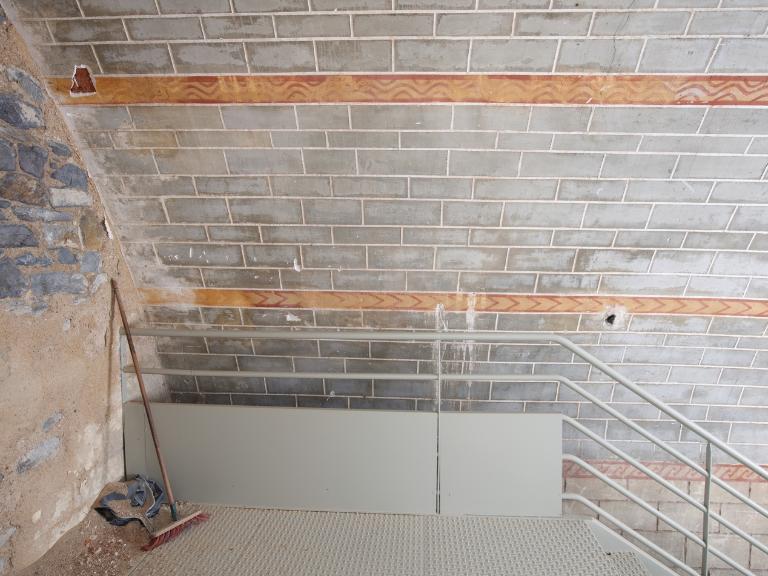 Les coupoles enduites de plâtre sont, comme on peut voir sur les coupes, décorées par des bandes horizontales d’un ton un peu plus soutenu que le fond. Ce ton est parait-il, un rose pâle, en harmonie avec ce granit[e] de l’île de Bréhat que je disais, dans ma causerie de 1901, teinté pour l’éternité dans le pourpre des soleils couchants.
