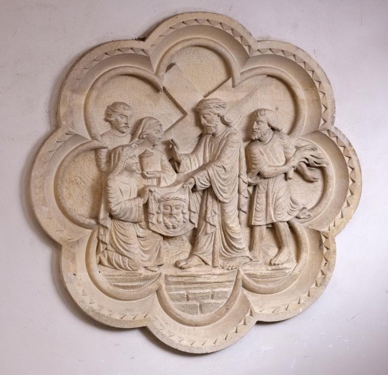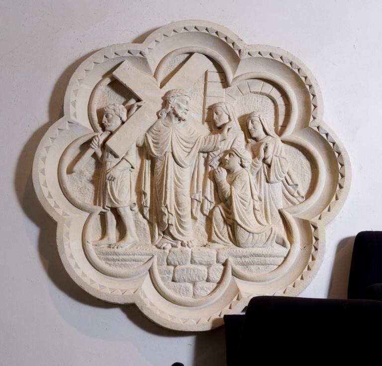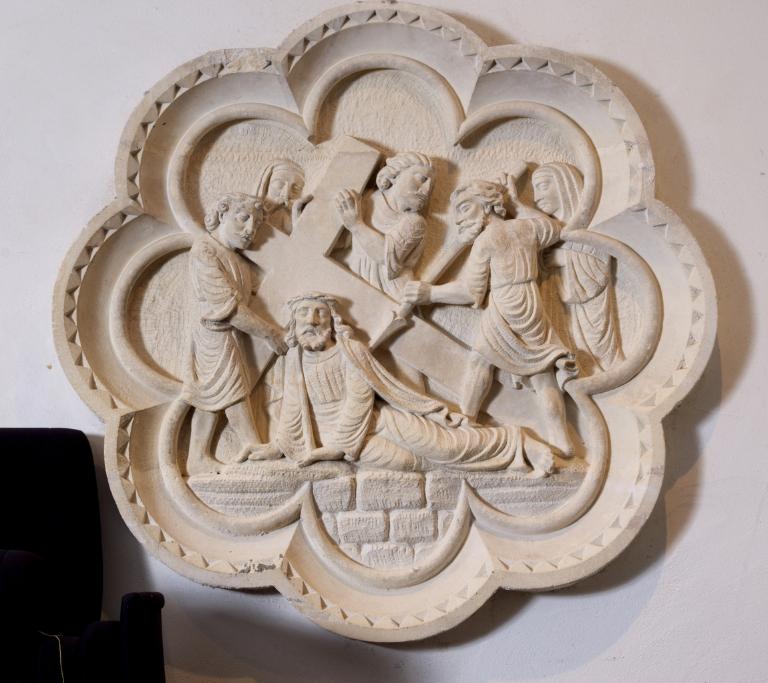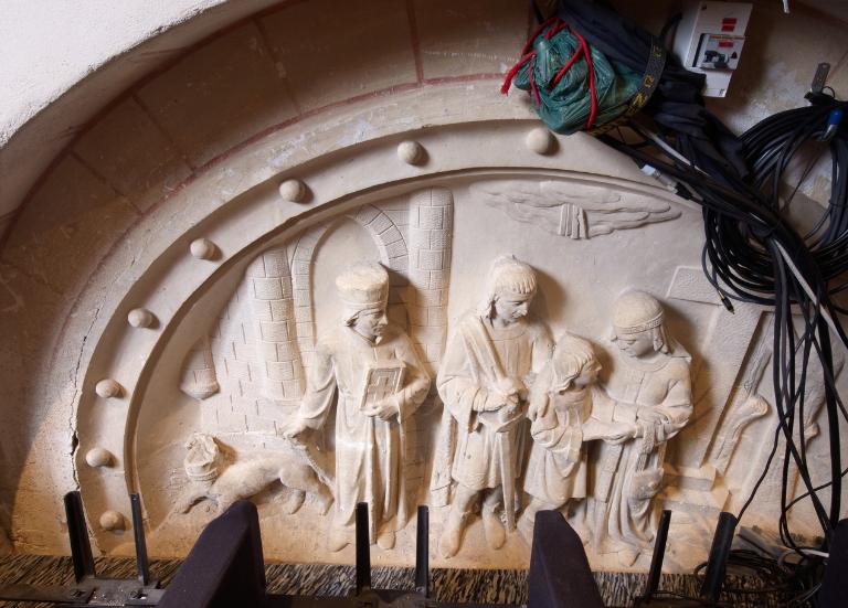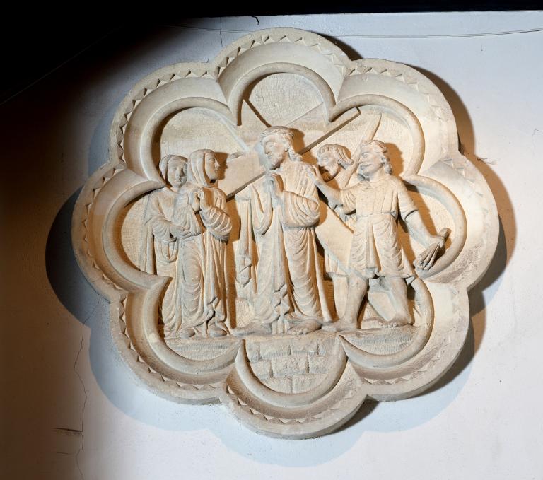 Une des inscriptions sur marbre placées par Henri Mellet rappelle le nom d’un des principaux donateurs primitifs : le chanoine Thépault de Rumélin.