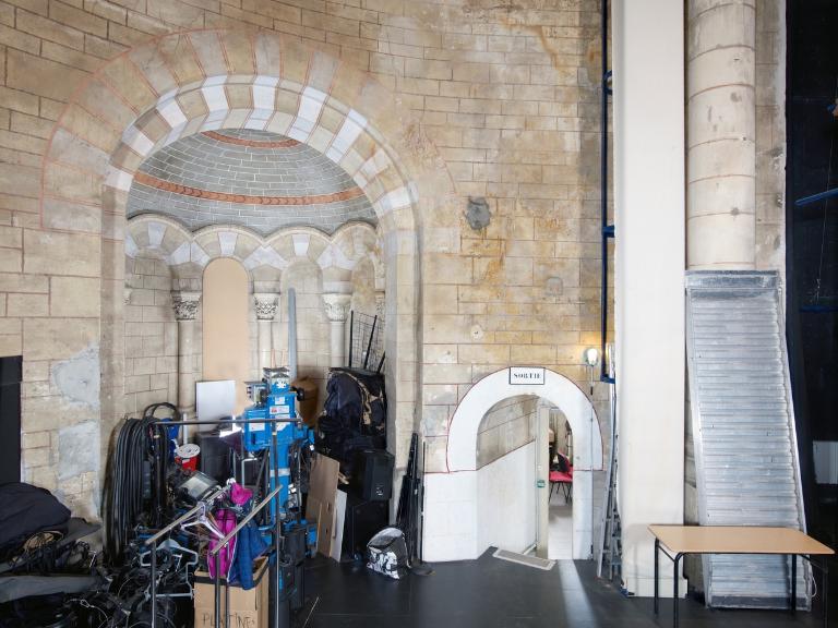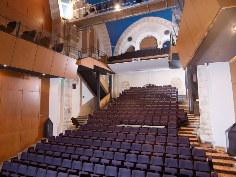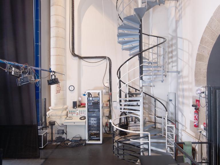 La salle de conférence sert aux réunions moins nombreuses, et en particulier à certaines réunions périodiques de tous les élèves. Elle est utilisée comme salle de dessin. La scène donne sur ces deux salles. [...]