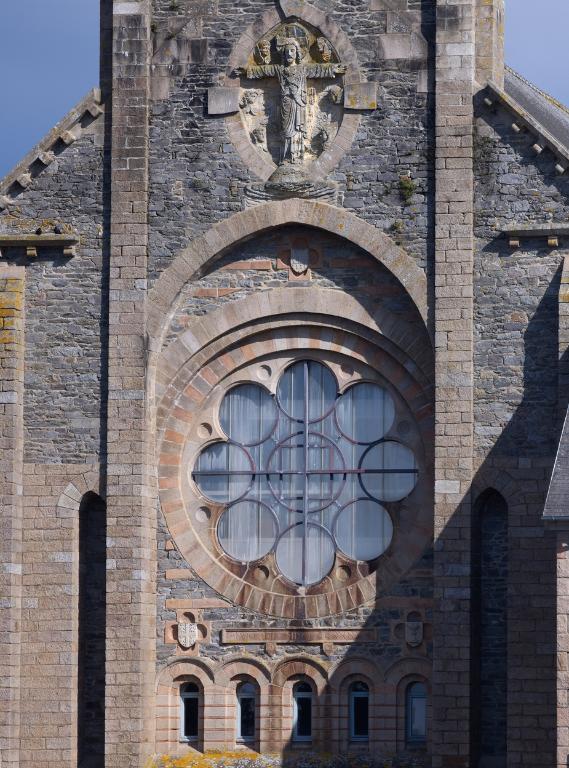 De là, ces constructions aux tailles presque brutes, aux moellons raboteux à peine dégrossis, en maçonneries épaisses mais peu couteuses, où le détail disparait pour laisser place à la seule silhouette. Parfois pourtant, piquant l’étendue grise des murailles, quelques accents de couleur que donne de place en place le granit[e] rose de l’île Bréhat.