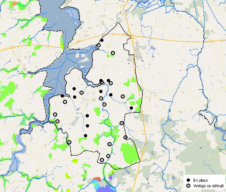 En dehors des écarts ou le bâti est regroupé, la carte ci-dessous dévoile une “poussière” de maisons nobles isolées et de «sieuries» aux abords des ruisseaux. La plupart de ces logis ont disparu ou ont été transformés. Les plus anciennes maisons nobles encore existantes, le Gué, Saint-Meleuc sont des 15e et 16e siècles, les autres manoirs ont été reconstruits sur des sites anciens, la Haute Motte en 1670, la Touche Bégasse en 1678, la Malouinière de la Touche Porée vers 1750.