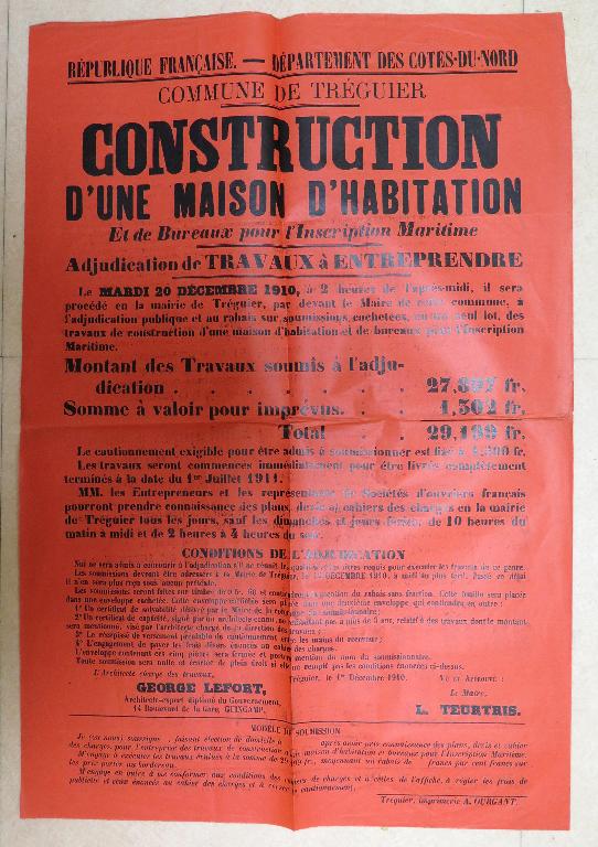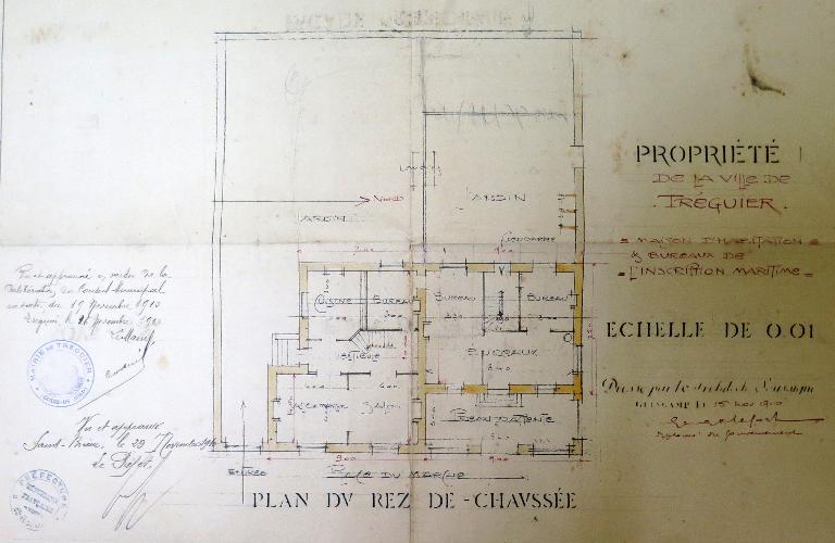Ce bâtiment à usage d'habitation et de bureaux de l’Inscription maritime a été conçu en 1910 par l'architecte Georges-Robert Lefort de Guingamp dans un style régionaliste. Il témoigne de la vocation maritime de la ville de Tréguier au début du 20e siècle.