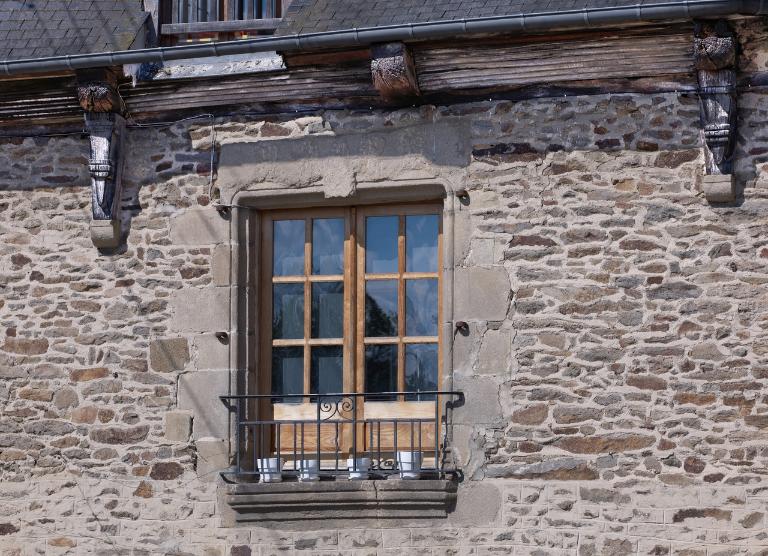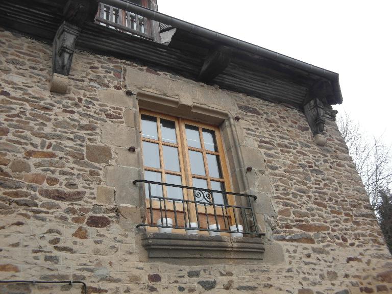 L’étage carré présente une large baie datant probablement du 16e siècle. Celle-ci est composée d'un encadrement de pierre de taille mouluré avec un appui en saillie ainsi qu'une clé traversante sur le linteau. Son linteau présente une accolade et des éléments de décor piquetés qui semblent avoir encadré des armoiries bûchées. Enfin une ouverture en plein-cintre aveugle sur le mur gouttereau, à l'angle de la rue est à signaler.