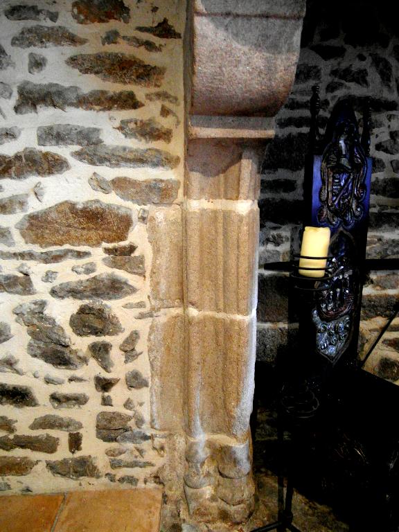 A l’intérieur une cheminée monumentale en granite se situe au rez-de-chaussée. Elle présente un décor et un traitement caractéristique de l'extrême fin du Gothique. Son manteau arrondi aux angles ainsi que les moulurations des jambages permettent de la situer dans les années 1500-1530. Disproportionnée par rapport à la hauteur sous plafond du rez-de-chaussée, elle pourrait provenir de l’étage de la maison. Enfin la charpente toujours visible date de l’époque moderne (17-18e siècles).