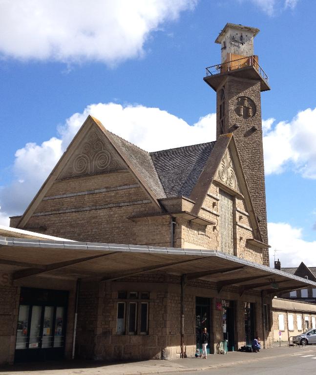 La première gare est mise en service le 29 décembre 1879 par la Compagnie des chemins de fer de l'Ouest. Mais la gare actuelle, réalisée en 1931 par Georges-Robert Lefort, fait partie du programme de construction établi par Raoul Dautry, directeur général de l'administration des chemins de fer de l'État pour rénover plusieurs stations de la compagnie.