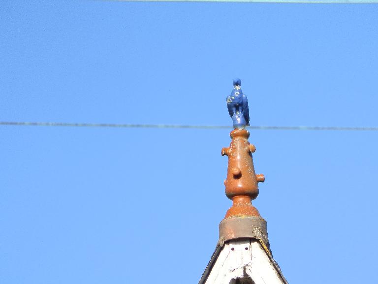 La façade sur la rue Leconte de Lisle presque aveugle, est marquée par la saillie du conduit de cheminée du premier étage, le toit très débordant à coyau prononcé et le auvent du perron d’entrée. Le mur de clôture à chaperon en bâtière est surmonté d’une toiture à deux pans avec fermes débordantes, percée d'une lucarne à fronton triangulaire en bois. Présence également d'un épi de faîtage en terre vernissée.