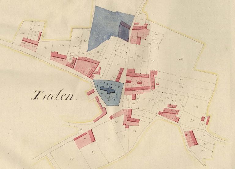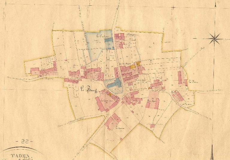 A 5 kms de la cité historique de Dinan, le village de Taden est doté d’un patrimoine exceptionnel. Les fouilles archéologiques ont révélé sur la Rance un vicus portuaire dont l’occupation se situe entre la fin du 1er siècle ap. J.C. à la fin du 4eme siècle ap. J.C. Sur les hauteurs, le village médiéval s’est implanté autour d’une église dédiée à saint Pierre et du manoir de la Grand’Cour construit, vers 1380, à la même époque que le donjon de Dinan pour la famille de Quédillac. Le nom de Geoffroy de Quédillac figure sur le testament de Bertrand Duguesclin grâce à ses loyaux services rendus lors des campagnes militaires du connétable. Ce grand logis seigneurial émerge du bâti alentour par sa haute tour d’escalier latérale surmontée d’une plateforme de guêt qui permettait de surveiller les mouvements sur la Rance.