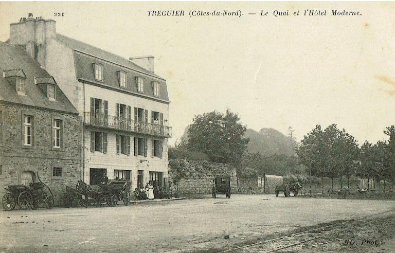 Sur le plan d’alignement de Tréguier de 1906 (série 2O 1 des archives municipales) l’édifice identifié comme "maison" et sa cour attenante appartiennent à la famille de Kergariou. C’est la même famille qui possédait la maison au n° 9 (numérotation actuelle) et le bâtiment au n° 10 de la rue.
