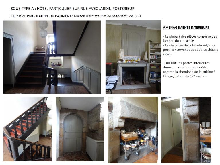 Situé au n° 11 rue du Port (sur le "Vieux quai"), cet édifice identifié comme "maison d’armateur ou de négociant" (hypothèse probable en raison de la typologie de cette demeure) est vraisemblablement datable du 4e quart du 18e siècle (de nombreux détails techniques et stylistiques vont dans ce sens : balustres découpées de l’escalier, fenêtres avec partie supérieure dormante, style des boiseries avec traces d’outils, montage des pentures à broche 1/3 - 2/3). Plusieurs éléments du 17e siècle semblent avoir être remployés dans la construction : une pierre d’évier et son évacuation, deux coussièges, une cheminée dans la cuisine et deux portes en arc plein cintre mouluré dans le vestibule.
