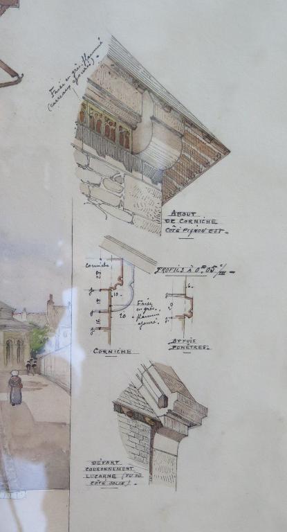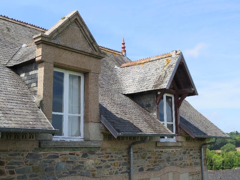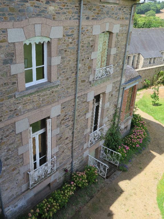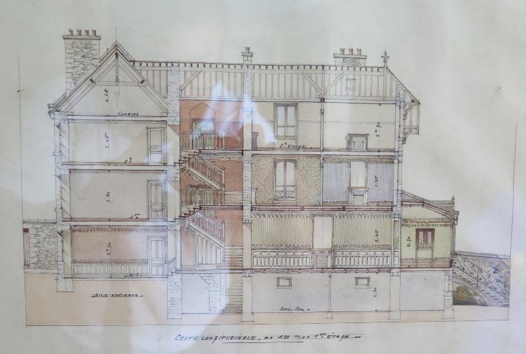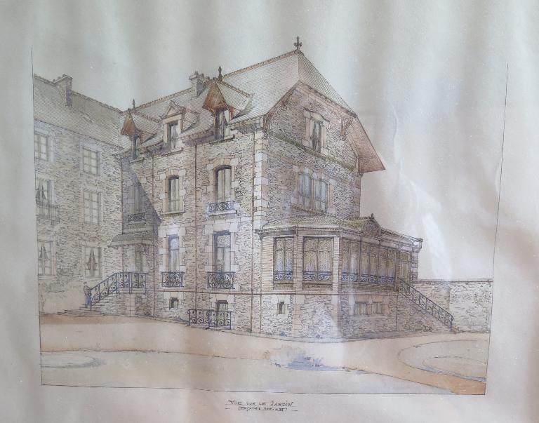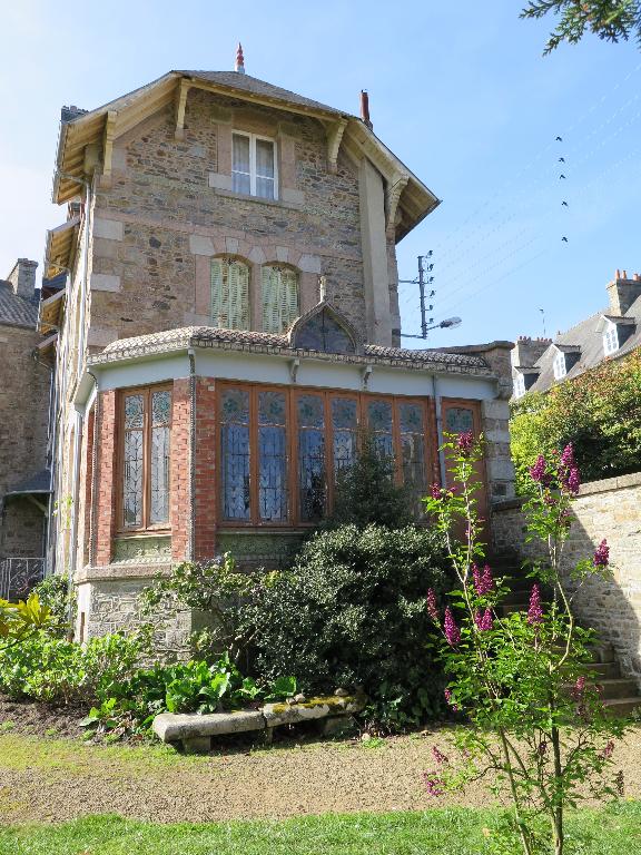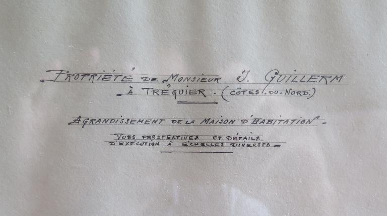Cette luxueuse maison d’habitation comprenant dix chambres a été rénovée et agrandie en 1904 par l’architecte parisien Émile Brunet (architecte parisien nommé Architecte en chef des Monuments historiques) pour le maire de Tréguier Jules Guillerm. Chaque enfant du couple Guillerm – ils sont cinq - peut ainsi disposer de sa propre chambre : les chambres des plus petits étant voisines de celles des domestiques. Du perron, on entre dans un grand vestibule donnant accès, d’une part au salon et au jardin d’hiver situé en enfilade, d’autre part à la cage d’escalier monumental donnant sur les chambres. Depuis le grand vestibule, se fait la communication avec la partie ancienne du logis. Construit en brique avec ornementation en carreaux de grès à décor floral et de coquilles, le jardin d’hiver présente une couverture en béton ornée de carreaux de céramique découpés en écailles de poisson. Les ouvertures sont dotées de vitraux Art nouveau tout en lignes courbes… La commande réalisée par l’architecte s’inscrit parfaitement dans son temps avec un décor de style Art nouveau pensé dans les moindres détails qui reflète la richesse du commanditaire. Les sols en mosaïque sont attribuables à l’atelier Odorico, le décor du salon est de Pierre Seguin sculpteur et professeur à l’École des Art décoratifs de Paris, et les pièces de ferronnerie d’Émile Robert, ferronnier d’art réputé. L’intervention de cet architecte a pu être identifiée grâce à deux planches du projet d’agrandissement conservées sur place.