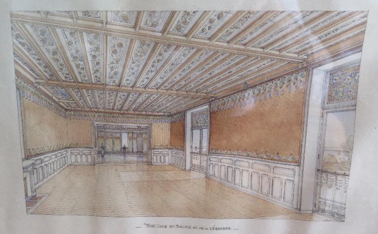 Le "nouveau salon" est doté d’un plafond à caisson à décor floral en staff dessiné et réalisé par le sculpteur P. Seguin. Il a conservé les doubles-rideaux et les papiers peints dessinés pour Jules Guillerm.