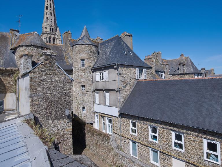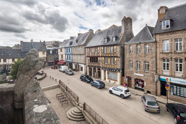 Dans la seconde moitié du 15e siècle, l'évêque Jean de Ploeuc élargit la place, l'aplanit puis la fait paver sur une partie. En 1610, la mise en place d'une canalisation d'eau permet d'alimenter le puits situé au bas de la place depuis la source de Plouguiel. Ce puits mentionné en 1463 est transformé en fontaine publique un peu après 1775, figurée sur le cadastre ancien et visible sur des photos du début du 20e siècle. Le tertre central était occupé par des halles flanquées d'un corps de garde et d'une boutique adjacente avant leur démolition en 1792. Un mail ovale planté d'arbres et bordé de murets est aménagé à l'emplacement des halles au début du 19e siècle. C'est sur ce mail qu'est inaugurée en 1903 la statue d'Ernest Renan. Les halles sont transférées en 1820 au nord-est de la cathédrale, sur la place Notre-Dame de Coatcolvézou ouvrant sur la rue Renan.