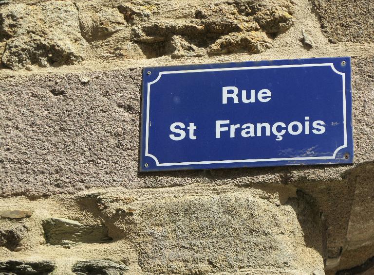 Du fait de la déclivité importante et de la présence de l’enclos du palais épiscopal sur la rive sud du Guindy, la rue Saint-François serpente jusqu’au carrefour des rues des Perdreries (Perderies) et Colvestre. Cette rue dispose d’un regard sur la conduite d'eau venant de Plouguiel par le pont-aqueduc du Guindy. Si la maison à pan de bois située à l’angle des rues Colvestre et de Saint-François est datée 1628 (actuellement débit de boissons "Madame Mouss'tache"), l’hôtel de Kermorvan situé en face (numéro 1 rue Saint-François) est vraisemblablement datable de la seconde moitié du 18e siècle selon l’analyse stylistique.
