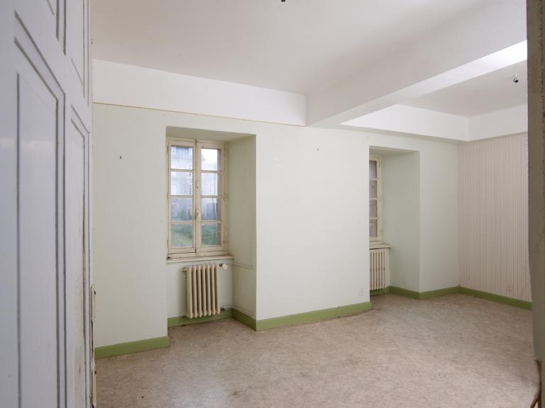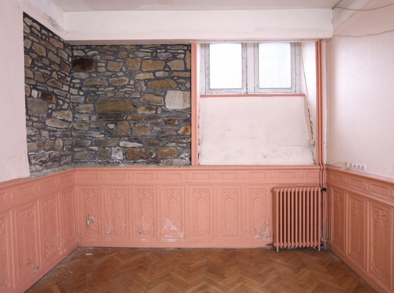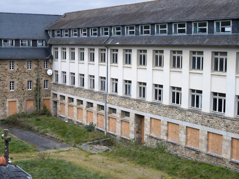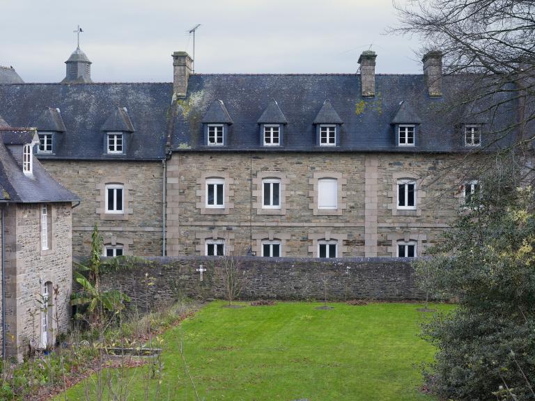 Occupant le côté nord de la cour, la maison conventuelle est édifiée en moellon de schiste et granite. Au rez-de-chaussée, il abrite le réfectoire et une salle de récréation (ancienne chapelle dont le volume a été divisé) séparés par un vestibule et une cage d'escalier. A l'extrémité ouest, un deuxième vestibule avec escalier dessert les deux étages occupés par les cellules tandis que le comble est aménagé en dortoir. Les trois grandes baies cintrées marquent l'emplacement de l'ancienne chapelle tandis que les petites fenêtres correspondent aux cellules des soeurs. Le toit est surmonté à l'ouest d'un campanile en charpente. A l'intérieur, les deux arcs en plein cintre ouverts dans le mur de refend ouest, au rez-chaussée et à l'étage, correspondent à l'entrée dans l'avant-choeur de l'ancienne chapelle (avant-choeur bas et avant-choeur haut ou tribune).