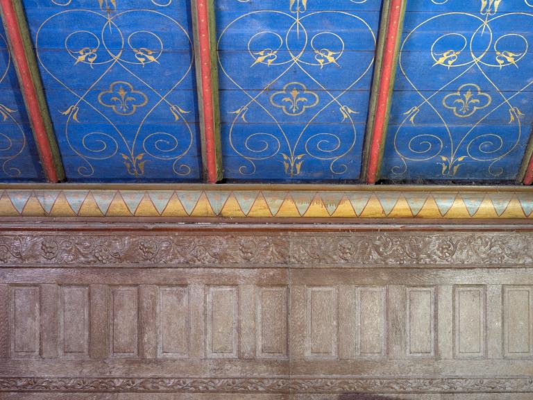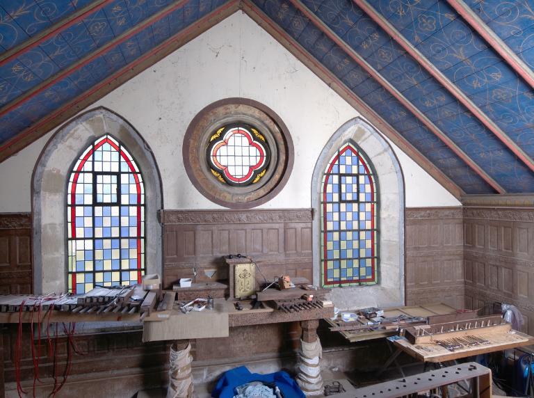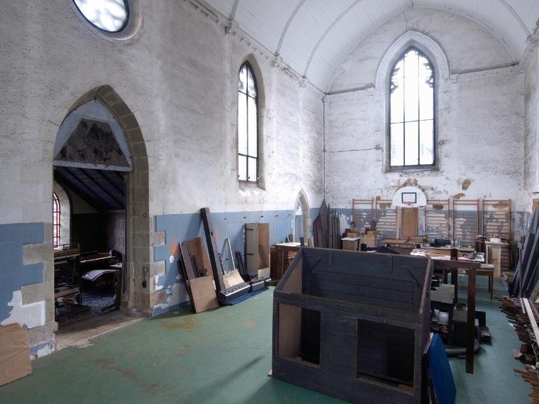 La chapelle proprement dite abrite donc deux unités - l'avant-coeur des soeurs et la chapelle des fidèles - que sépare un arc diaphragme orné d'un décor boisé et sculpté de style néo-gothique. Un autel à double face, aujourd'hui disparu, était placé entre les deux espaces, sous l'arc. Côté soeurs, l'avant-choeur est couvert d'une fausse-voûte surbaissée, héritage du précédent sanctuaire dont on a conservé la toiture, la charpente et le grenier par un savant étayage lors de la reconstruction. La chapelle des fidèles est accessible depuis la rue de la chantrerie, elle est couverte d'un berceau brisé en lambris et conserve un décor peint néo-gothique sous le chaulage de ses murs, comparable à celui de la petite chapelle latérale accolée à l'est. Une sacristie accessible depuis l'avant-choeur et le choeur est également accolée à l'est.