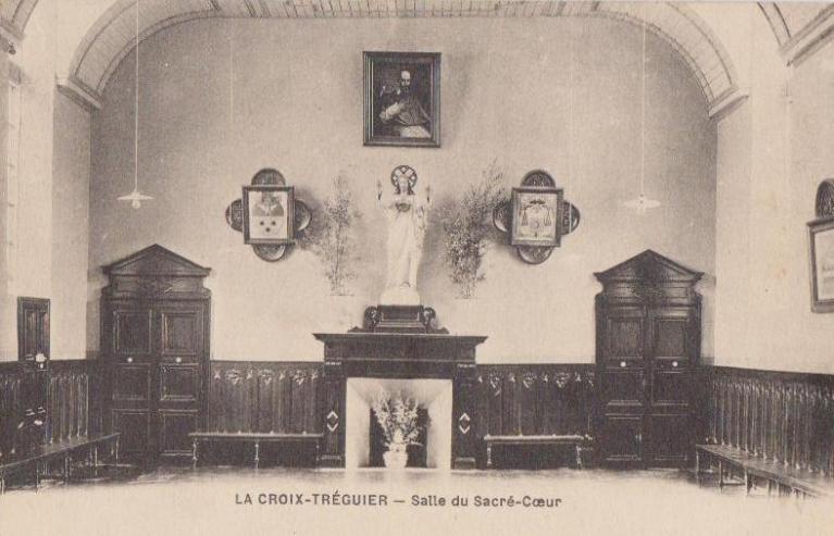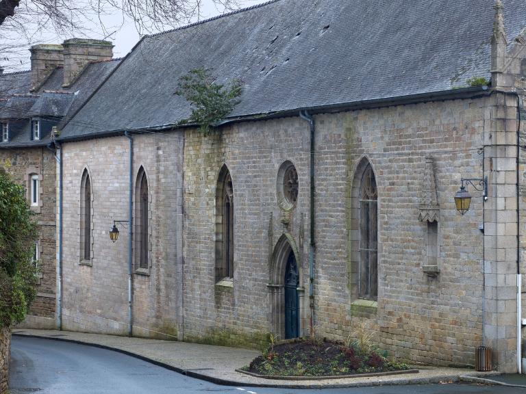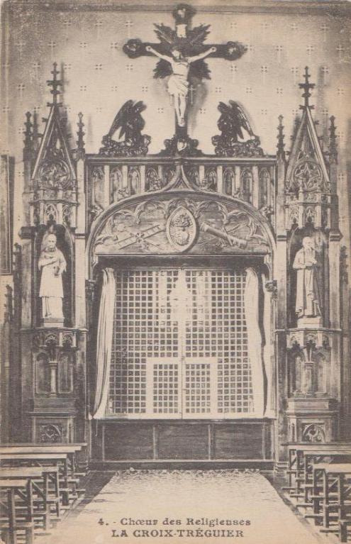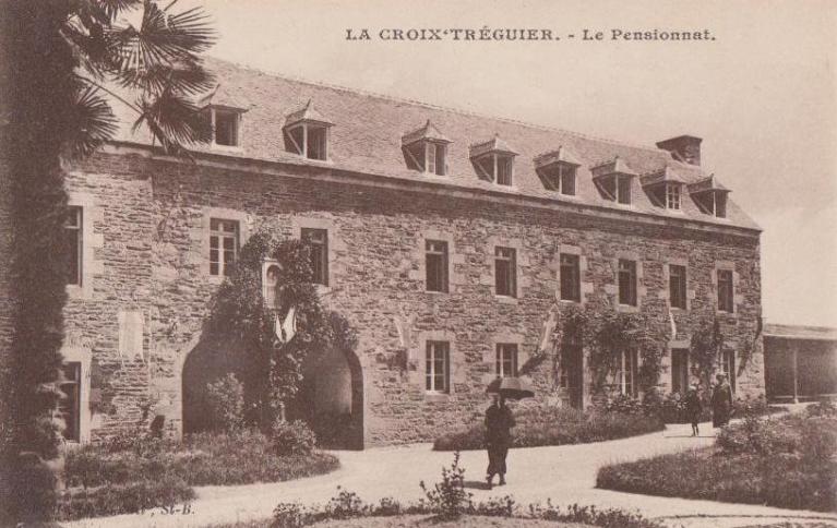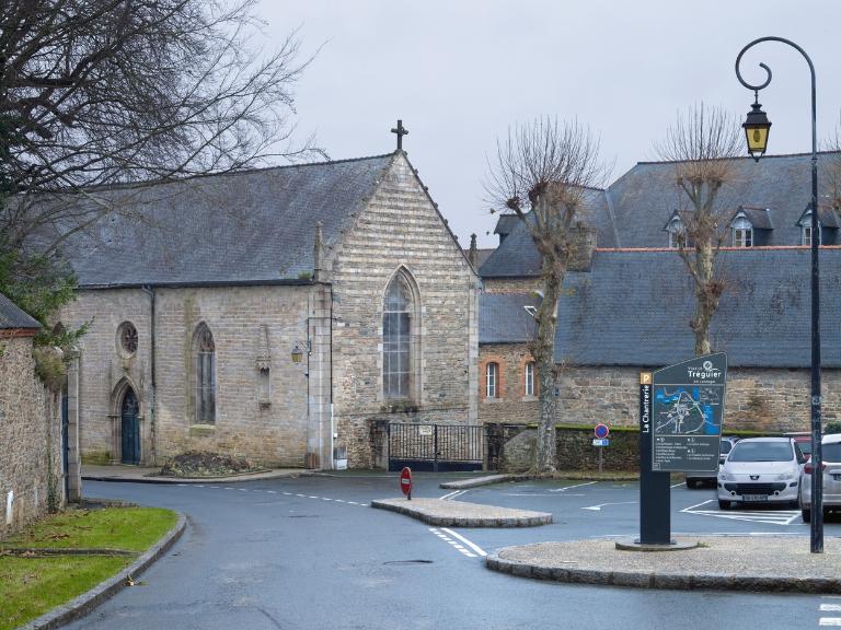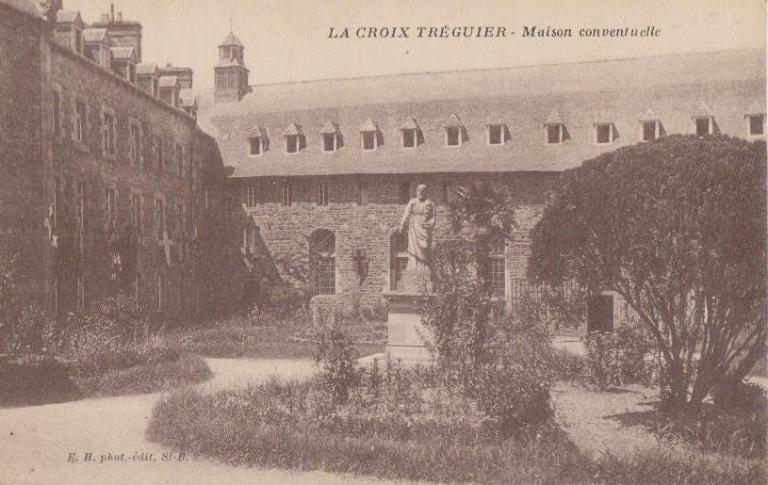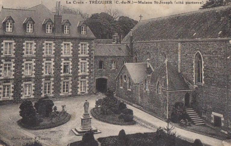 Le couvent des Filles de la Croix créé à la fin du 17e siècle a évolué au cours de la seconde moitié des 19e et 20e siècles. Certains bâtiments ont été remaniés, d'autres reconstruits, d'autres encore édifiés ex-nihilo. Malgré ces nombreux remaniements, le couvent a conservé son organisation spatiale à l'exception de la chapelle, autrefois intégrée dans l'aile des sœurs puis "externalisée" sur le côté ouest de la cour. Ce sanctuaire de la seconde moitié du 19e siècle présente un intérêt patrimonial avéré du fait de son décor sculpté et peint, de son mobilier mais également de sa jonction très intéressante avec le bâtiment des pensionnaires et son infirmerie. L'organisation de son volume en deux parties - chœur des sœurs au nord, chapelle des fidèles au sud - est comparable à celui de la chapelle des Paulines. La permanence de l'enclos, espace libre bordé de hauts murs autrefois consacré au verger-potager, participe à l'identité du tissu urbain de Tréguier composé notamment de grandes parcelles paysagères propres aux couvents.