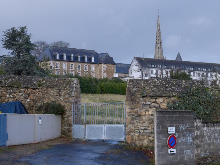 Le couvent est établi au carrefour des rues Saint-André et de la chantrerie. Les bâtiments conventuels sont édifiés autour d'un parterre fermé par un corps de passage. Hors cette clôture, au sud, la maison Saint-Joseph, quelques dépendances et l'ancienne maison des prêtres occupent une petite cour séparée qui ouvre rue des buttes. Dans l'enclos qui se développe à flanc de coteau au sud-est des bâtiments, se trouve une petite chapelle funéraire (cf. dossier correspondant). Couvrant plus de deux hectares, ce vaste terrain clos de hauts murs était divisé en deux parties : près de la Maison Saint-Joseph, un jardin d'agrément avec allées dessinées dont l'une dans l'axe de la chapelle ; dans la partie basse, une prairie qui remplace l'ancien potager-verger destiné à l'alimentation des soeurs et des pensionnaires.