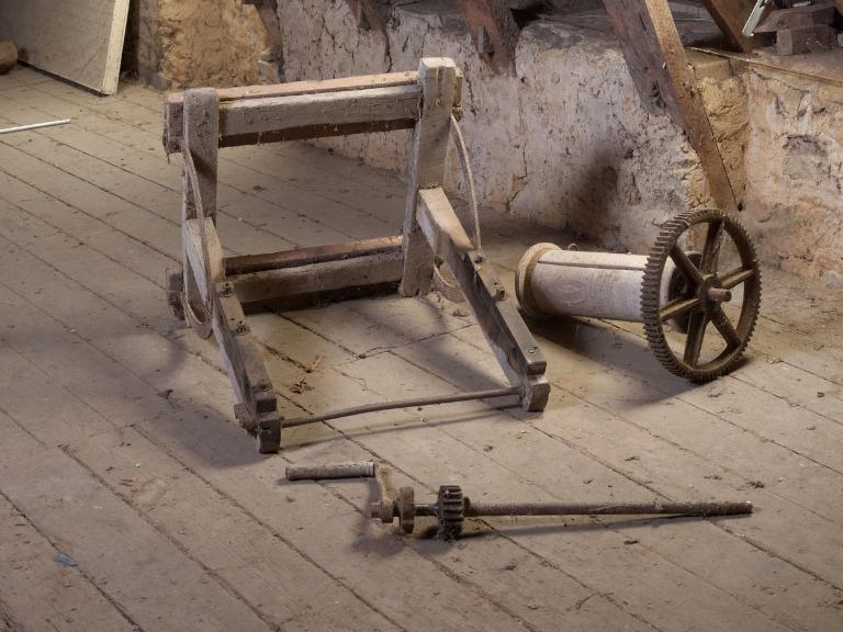 - escalier intérieur : escalier tournant à retours avec jour en charpente