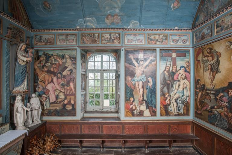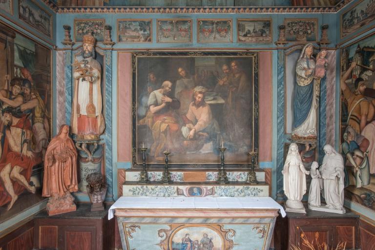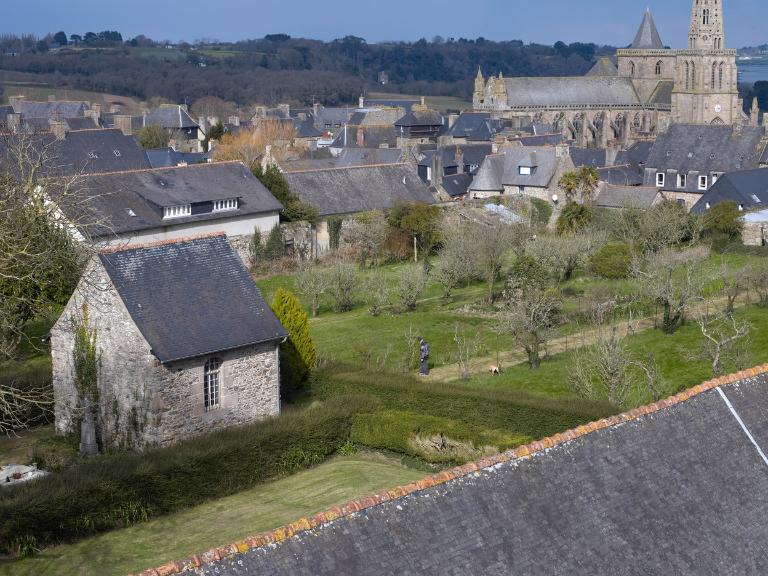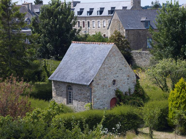 Cette petite chapelle est dédiée à saint Pierre en hommage à Pierre Loz, seigneur de Kergouanton, bienfaiteur du couvent. Elles est située dans le jardin du couvent, à l'Ouest, attenante au cimetière des soeurs. La chapelle initiale, édifiée en 1656 (d'après les annales des soeurs Augustines), très dégradée à la Révolution, est reconstruite entre 1814 et 1817, date à laquelle elle est bénie par Charles Riou, curé de Tréguier. L'intérieur de l'édifice est entièrement lambrissé et couvert d'un décor historié : les peintures murales sur les murs Nord, Sud et Est se différencient des vingt-quatre petits panneaux peints sur le pourtour du lambris de hauteur, des douze tableaux de saints peints dans l'embrasure des baies Nord et Sud et des peintures de la voûte lambrissée. Un tableau du 17e siècle provenant d'une église parisienne est acquis à cette occasion pour orner le retable. Sa facture savante le distingue des autres peintures de la chapelle. De part et d'autre du retable, les statues du 17e siècle de saint Pierre et de la Vierge à L'Enfant, de facture naïve, sont également achetées par la communauté pour orner le sanctuaire.