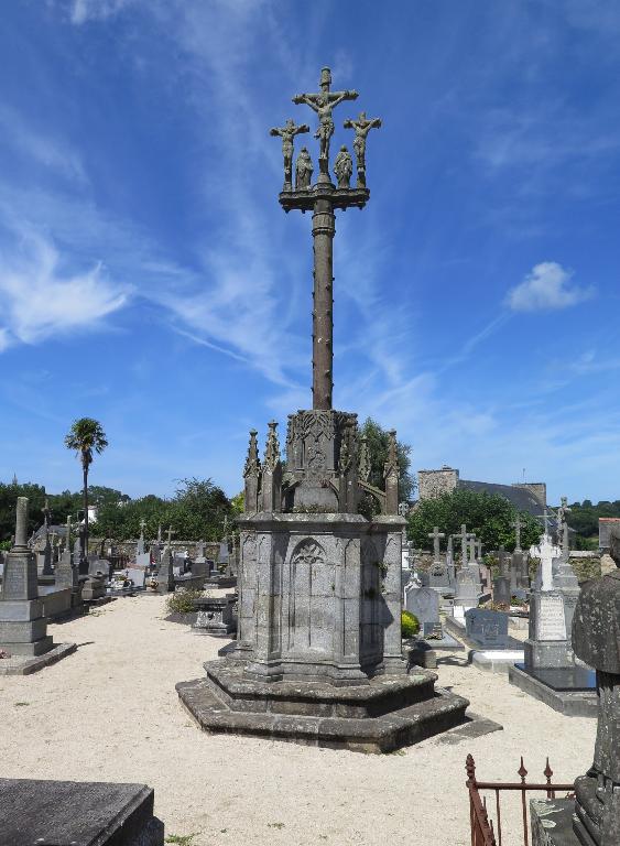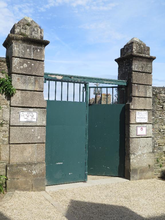 Dans le cimetière sont enterrés plusieurs générations de trécorrois plus ou moins célèbres : madame Taupin (guillotinée place du Martray en 1794), des ecclésiastiques comme Charles Riou (mort en 1830 et dont la tombe est surmontée d’une statue de clerc en prière), Gustave Le Borgne de la Tour (homme politique mort en 1893), la famille d’Anatole Le Braz (onze personnes décédées en 1901 suite à un naufrage au large de Plougrescant), la famille de Dieuleveult (François-Marie, médecin reconnu mort en 1821 et Paul, homme politique décédé en 1867), la famille Caplot (Paul, âgé de huit ans, enterré en 1925 avec sa petite voiture dans une chapelle funéraire vitrée), Hélène Lahovary (princesse Kretzulesco disparue en 1921) et son mari Gustave de Kerguezec (ancien sénateur maire de Tréguier mort en 1955) ou encore Henri Pollès (écrivain, romancier, poète et essayiste français décédé en 1994). Les archives communales de Tréguier conservent dans la série 3N1 les actes administratifs relatifs aux concession de 1851 à 1982. Le calvaire réalisé par Yves Hernot est daté de 1852.