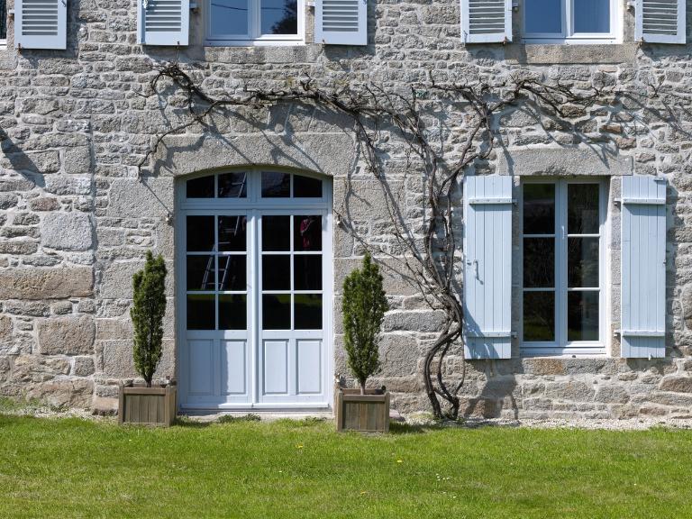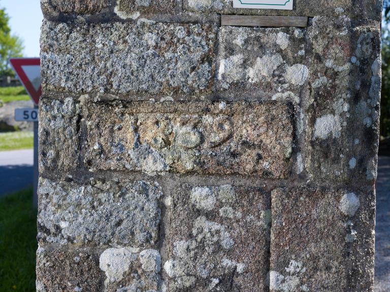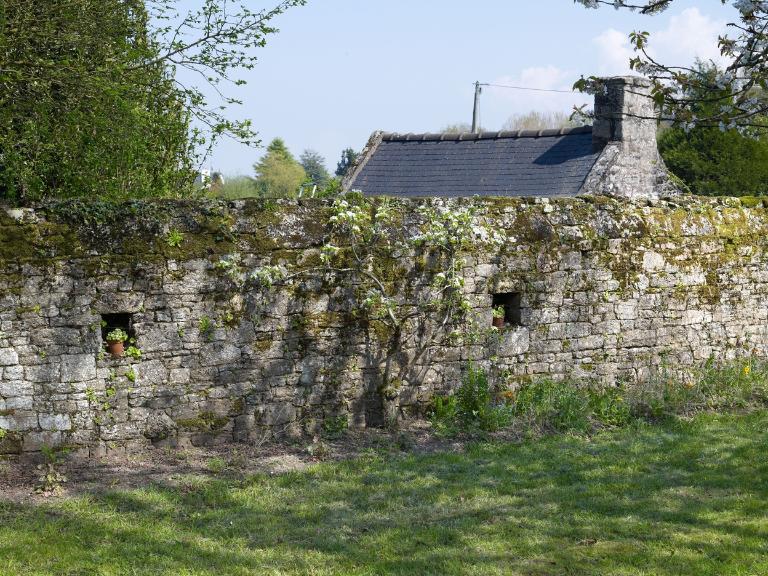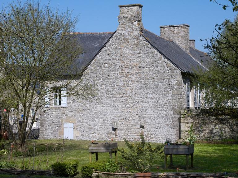 - La partie la plus ancienne semble dater du XVIIe siècle, en raison de la présence de différents éléments architecturaux. La façade comporte une ouverture en plein-cintre moulurée d'un cavet, qui pourraît même dater du XVIe siècle. Cette ouverture est surmontée d’une pierre gravée quadrangulaire, dont le dessin, bien que peu lisible, évoque la forme d'un calice. Ce symbole était couramment utilisé en Bretagne avant le XVIIIe siècle, pour distinguer les maisons de prêtres. Cette gravure est similaire à celle que l’on peut trouver sur l'ancien prieuré-cure de Trébédan.