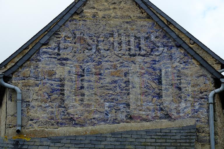 L’encart publicitaire le plus dégradé est encore observable au n°1 rue de la Commanderie, sur le mur gouttereau nord. Cette habitation est située à l’entrée de la rue de l’École, dans un tournant de la route. La publicité était de ce fait visible par les voyageurs venant de Dinan. Très effacée, la peinture comprend des traces blanches pour son cadre et pour l’ancien lettrage, et bleues pour le fond.