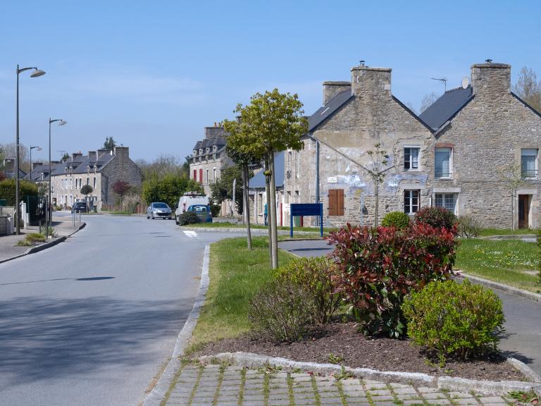 L’axe historique de circulation traversait auparavant le bourg et passait par l’actuelle rue des Templiers. Les bâtiments que cette voie longe sont en majorité construits en front de rue et présentent dans l’ensemble une certaine uniformité architecturale. Cette homogénéité est liée à la période d'expansion du bourg, qui s’est majoritairement développé sur un temps court entre 1824 et le début du XXe siècle et a gardé son authenticité depuis. L’omniprésence du granite dans les constructions du bourg accentue cette impression. La route nationale offrait ainsi une vue resserrée, interne, du bourg.