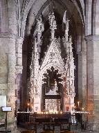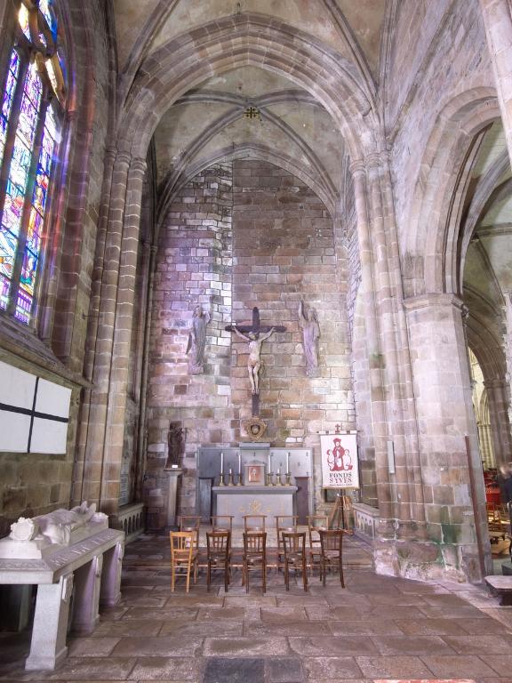 Fait prisonnier pendant cinq mois en 1420 par les Penthièvre, le duc Jean V de Bretagne (1389-1442) avait fait le vœu, s’il était libéré, d’offrir à saint Yves un tombeau en donnant son poids en argent. Fondée en l’honneur de saint Yves le 7 octobre 1420, la chapelle du Duc ou "chapelle saint-Yves" abritait le tombeau contenant les reliques du saint. En dépit de son vœu d’être enterré à Tréguier près de saint Yves, le duc Jean V est enterré à Nantes.