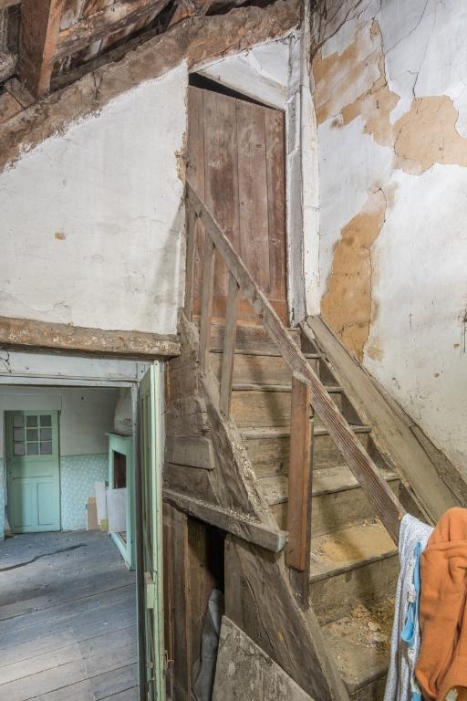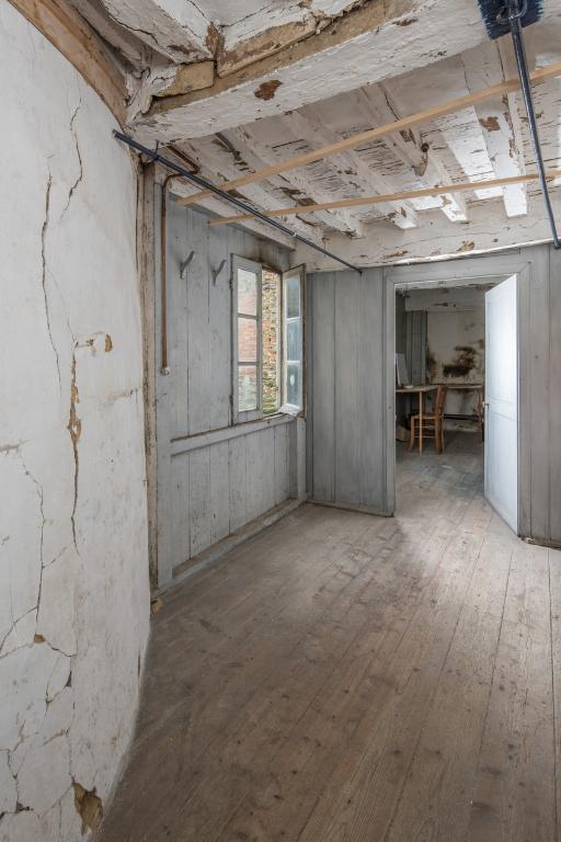 Cette maison de marchand sur la place du martray est établie sur une parcelle longue et étroite héritée de la période médiévale. Le second corps de logis sur cour, en ossature et bardage bois, témoigne d'une solution économique adoptée en milieu urbain pour répondre à un besoin d'agrandissement. Témoin modeste d'un mode d'habitation et d'une adaptation au parcellaire d'autant plus précieux qu'il est fragile.