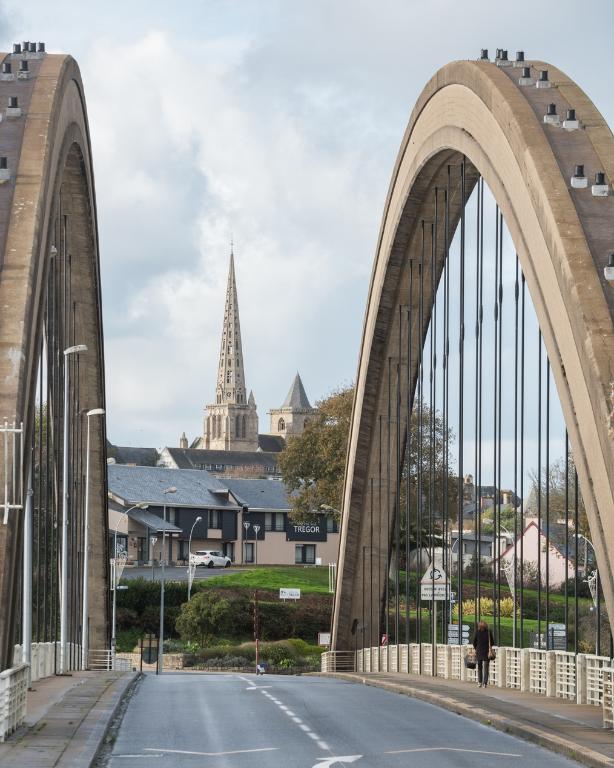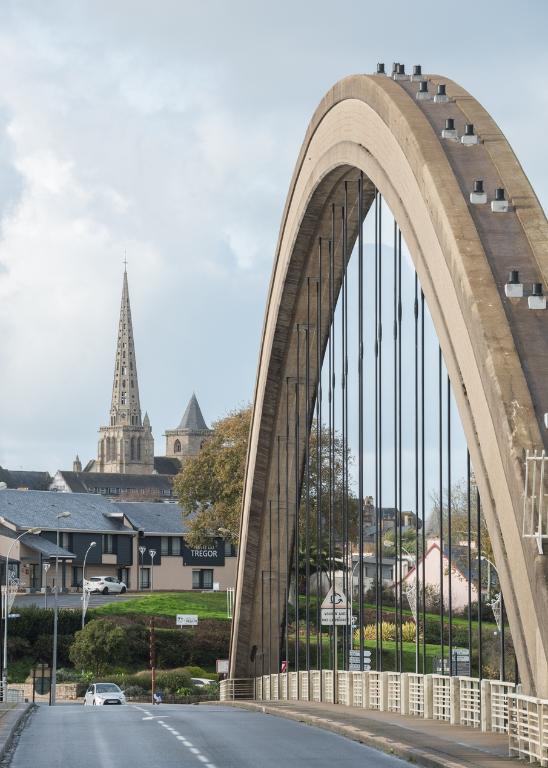Le pont actuel – troisième pont - a été réalisé par l’ingénieur Gilbert Lacombe (1922-2008), directeur technique de la société des constructions Edmond Coignet (rachetée ensuite par l’entreprise Spie Batignolles) sur un projet de 1941. Afin de faciliter la circulation, le tracé de la route nationale 786 reliant Dinard à Morlaix par la côte est simplifié au niveau du nouvel ouvrage. D’une portée de 153 mètres, il s’agit d’un modèle de pont en arc avec tablier inférieur réalisé en béton armé doté de suspentes en acier. Sa construction s’étale sur 26 mois à partir du 15 février 1952. Quoique inauguré officiellement le 25 juillet 1954 par René Pleven, président du conseil général des Côtes-du-Nord, il a été emprunté par les coureurs du Tour de France le 13 juillet. Les « épreuves » de l’ouvrage ont été réalisées le 10 juillet (soit 90 jours après la dernière coulée de béton) : le convoi d’essai était constitué de 3 porte-chars et d’une vingtaine de camion représentant un poids total de 500 t. Les mouvements maximums du tablier ont été de 22 mm seulement !
