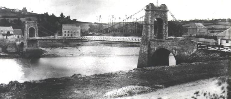 Inauguré le 29 mai 1834, le premier pont Canada – le lieu et la grève sont cités ainsi dès 1619 - permet de franchir le Jaudy sans avoir à emprunter des bacs ou à remonter jusqu’à La Roche-Derrien. Ce pont routier suspendu d’une longueur de près de 100 mètres, prolongé de chaque côté par une arche en pierre, est financé par monsieur Ozou, négociant à Tréguier, contre une exploitation à péage d’une durée de 70 ans moins un mois. S’il facilite la communication entre Trédarzec et Tréguier, le pont interdit en revanche toute remontée du Jaudy à des navires dont le tirant d’air est supérieur à 3 mètres. Le pont, avec ses droits de péage est vendu en 1849 mais la concession est rachetée en 1873 par le conseil général des Côtes-du-Nord qui souhaite le rendre gratuit. En juillet 1886, ce pont est déconstruit. De cet ouvrage subsistent une travée en maçonnerie côté Trédarzec.