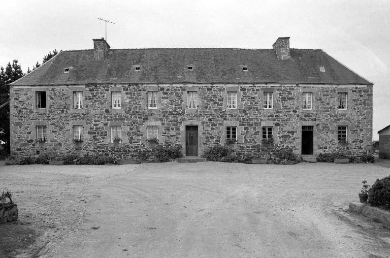 Édifié en moellon de granite et de schiste, le logis comporte un rez-de-chaussée, un étage carré et un étage de comble. Sa façade principale orientée au sud est ordonnancée à neuf travées, ses baies sont à linteau droit avec encadrement en pierre de taille de granite. Un appentis, anciennement à usage de cellier et un fournil sont accolés au nord.