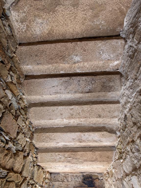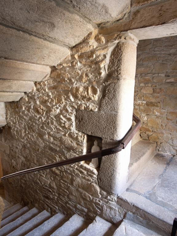 A la fin du 16e siècle, l'escalier en vis dans oeuvre est remplacé par un escalier rampe sur rampe hors oeuvre. L'importance de la cage nécessite de le construire à l'extérieur du bâtiment, dans la cour.