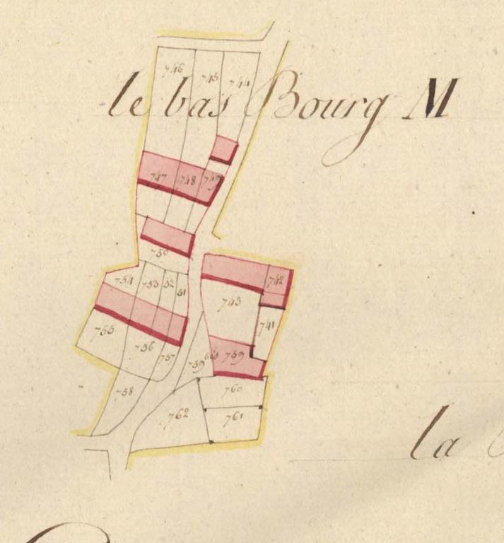 Dans un alignement de maisons situé au Bas Bourg, cette habitation se distingue par son inscription sculptée dans un cartouche au linteau de la porte d’entrée de la salle : M. P. Ferar, 1789. Patrice Ferar ou Ferrard fils l’occupe en 1844 avec son jardin attenant nommé le petit courtil. Ce dernier est signalé comme étant meulier (fabricant et tailleur de meules), vraisemblablement comme l’était son père.