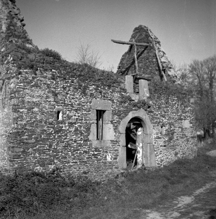 Le Merdy Bihan, logis déclassé en dépendance, façade inversée, cheminée disparue, deux kuzh gwele témoignent de l’emplacement de lits-clos ou de meubles (17e siècle – début 18e siècle),