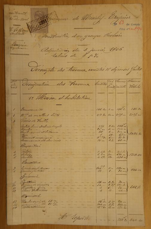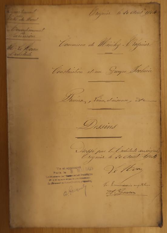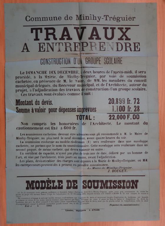 "Architecte" et "conducteur des Ponts et chaussées à Tréguier", Le Noan a réalisé le "devis descriptif et estimatif des travaux" de construction d’un groupe scolaire à Minihy-Tréguier, son "cahier des charges" et les "dessins" le 20 août 1904.