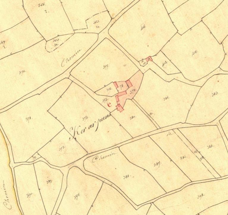L’observation des dispositions intérieurs de la partie supérieure de l’escalier (dont les vestiges d’une cheminée) ainsi que la présence d’un point de repère sur le cadastre ancien (correspondant au sommet d’une toiture) plaide pour la présence ancienne d’une pièce haute.
