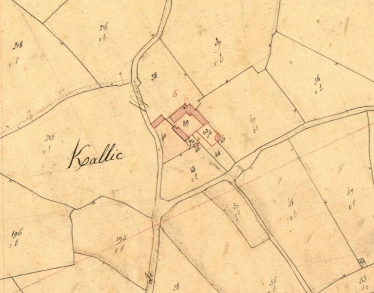 Selon les états de section du cadastre, "Kerallic" (orthographiée "Ker Allic") exploitée en "convenant" appartient en 1835 à Pierre Conan désigné comme "colon". Les parcelles sont désignées comme "ar chlos bras, labour" (n° 37), "ar hoat, pâture" (n° 38), "maison, bâtiment et cour" (n° 39), "l’aire et bâtiment" (n° 40), "jardin" (n° 41), "bâtiment" (n° 42), "chlos ar leur, labour" (n° 43), "an entrée, pâture" (n° 44), "ar jardin" (n° 45), "le colombier, bâtiment" (n° 46), "parc ar houldry, labour" (n° 47) et "Loguel pen an entrée, labour" (n° 57). D’autres parcelles appartiennent à ce propriétaire. Plusieurs parcelles immédiatement proches de Kerallic identifiées comme "Convenant Bail" (du nom de la ferme disparue située au sud) appartiennent en fond au marquis d’Argentré mais sont exploitées par Yves Loyer en qualité de "colon". L’ancien logis noble de Kerrivoalan tout proche à l’ouest appartient également au marquis d’Argentré.