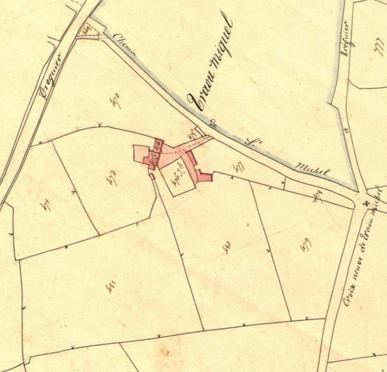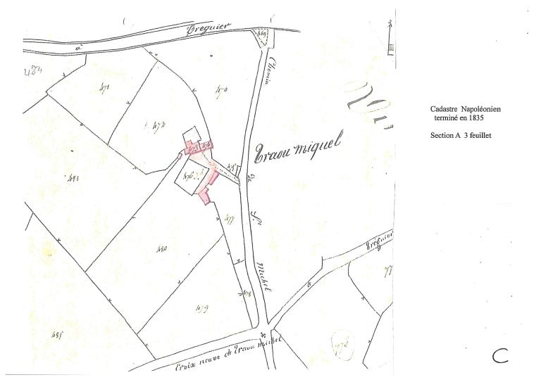 - Sur le cadastre Napoléonien datant de 1835 les bâtiments de TRAOU MIQUEL sont nettement apparents (pièces C et D).