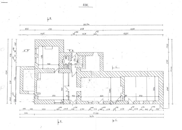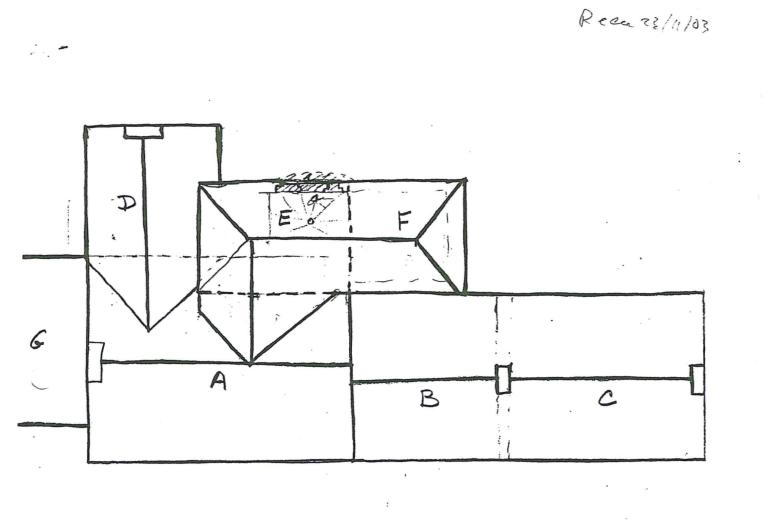 - Sur les bâtiments annexes, quelques modifications ont été apportées : un petit bâtiment, dit "la crèche", n'existe pas sur le cadastre de 1835 (pièce C) et serait donc postérieur à cette date. De même un autre bâtiment qui existait à cette dernière date n'existe plus aujourd'hui.