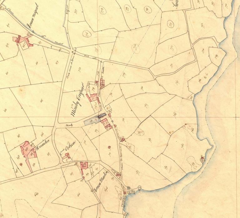 La maison située au sud de Crech Martin appartient à "Lucas, la veuve" habitant Tréguier (parcelles n° 725, n° 726 et n° 727). En face, la maison dite "maison calvari" appartient à "Yves Goarin, veuve". Une maison – figurant déjà sur le cadastre - est associée au toponyme "Ty nod", littéralement la maison sur la côte.