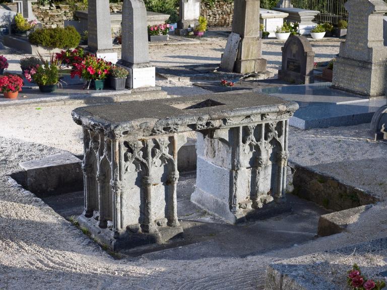 Dès la canonisation de Saint-Yves en 1347 et alors que le culte de saint Yves ne cesse de prendre de l’ampleur, la chapelle prend son vocable. Dans l’enclos du cimetière se trouve le petit oratoire-chapelle funéraire de la famille de Kermartin. De cet édifice détruit en 1823 subsiste le tombeau – cénotaphe de saint Yves (le gisant a disparu, probablement pendant la Révolution) qui est intégré au pardon de saint Yves (les pèlerins passent à genoux sous la voûte afin de recevoir les bienfaits de la sainteté).