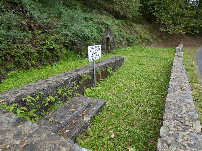 La chapelle Saint-Marc - apparaissant fortement ruinée en 1973 sur des photographies - est totalement déconstruite à la fin des années 1970 et ses pierres sont vendues. La fontaine a été remontée par Eugène L’Hévéder, maçon de son état. Sous la voûte de pierre, on peut voir une niche à statue prête à accueillir saint Marc.