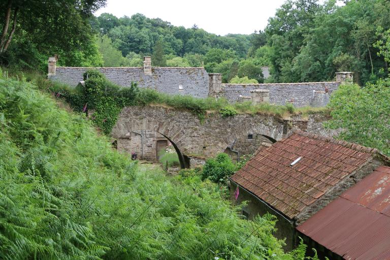 Le cadastre de 1835 nous montre quatre bâtiments tous situés au sud du pont-aqueduc. Le moulin figurant sur le plan du 17e siècle et sur le cadastre semble avoir disparu des photographies du début du 20e siècle.