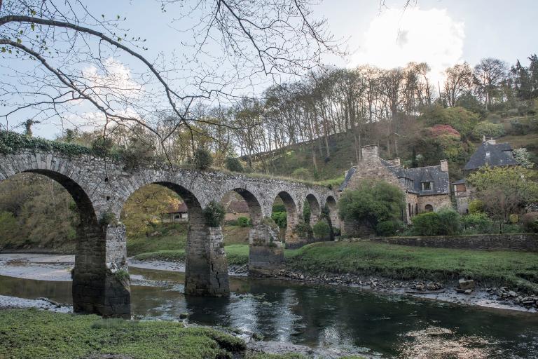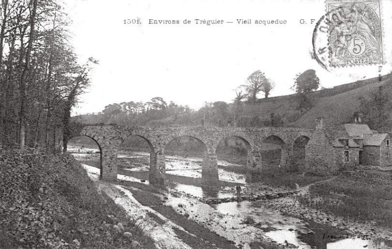 Le pont du Guindy situé sur le chemin d’intérêt n° 33 a été détruit par une crue survenue le 9 octobre 1880. A cette époque, la vallée du Guindy abrite : "trois minoteries importantes : celle de monsieur Talibart, de madame veuve Balcou et de Pezron, la tannerie de monsieur Balcou, les usines à lin si considérables de Kerouzy et du moulin de l’Evêque, six buanderies, les vollages du Guindy composé d’environ 40 feux"2. Près du pont-aqueduc aqueduc étaient déchargés par bateau des engrais marins.