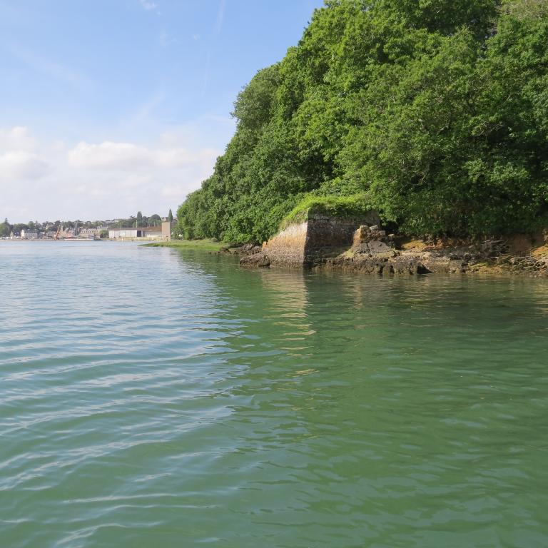 Pour la défense côtière en elle-même, était positionnée à Crec’h ar Brun, en bordure de l’estran, à 100 mètres sous le corps de garde de Saint Laurent, une batterie de 5 canons abritée derrière un merlon de terre. Ces canons gardaient le passage le plus étroit du chenal, là ou les bateaux évitent à angle droit le banc de sable face au rocher du Taureau.