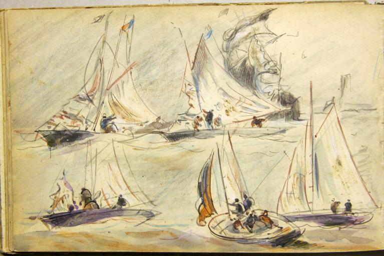 Sans oublier les scènes de régates à Paimpol, Tréguier ou Perros-Guirec, lorsque la vivacité du trait et la danse des couleurs montrent l’alliance parfaite des carènes hachant la sciure des vagues, la frénésie des manœuvres...