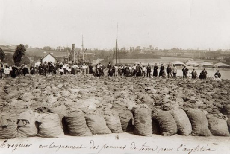 Les exportations concernent 103 navires (5 400 tonneaux) qui se rendent à l’étranger ou à la grande pêche, les 463 autres (près de 8 000 tonneaux), commercent vers les ports de la Bretagne Nord, des Flandres et de Normandie, mais se rendent aussi à Bordeaux ou à Bayonne. Ils sont chargés de pommes de terre, de céréales ou de farines. En 1908, Tréguier est le 9ème port français. La situation est inchangée 25 ans plus tard. En 1909, le premier produit importé à Tréguier est le bois de construction (près de 75 000 quintaux), suivi de la houille (45 000 quintaux) et des engrais chimiques venant de Hollande ou de Belgique (6 500 quintaux). Le port exporte 115 000 quintaux de pommes de terre primeur (la fameuse Duc, semence fermière) vers les côtes anglaises et 1 500 quintaux de goémon. Les paysans apportent au port leur production de pommes de terre, afin de les faire peser et d’assister à leur embarquement. Cette « saison de la patate » constitue avec le pardon de Saint-Yves au mois de mai l’un des moments forts de la vie de la ville.
