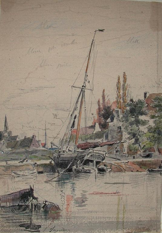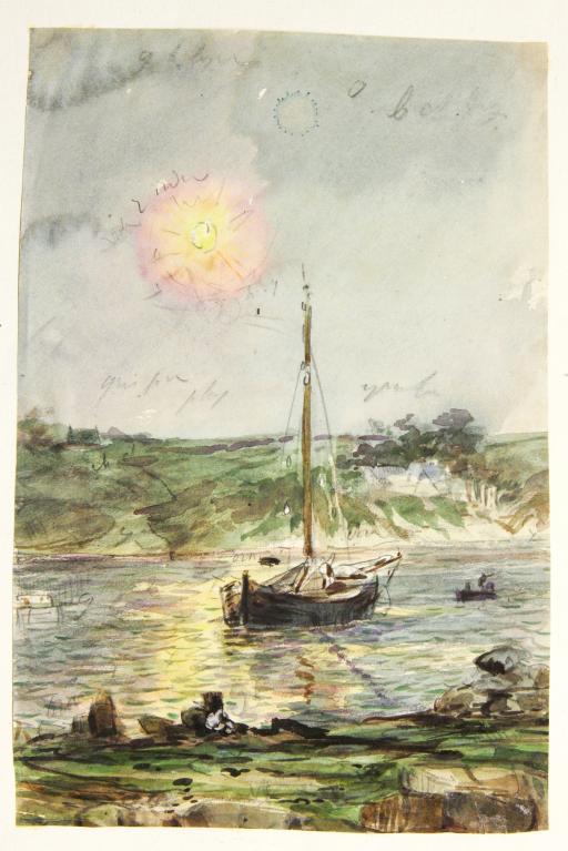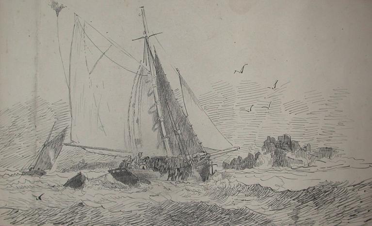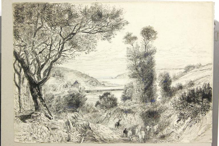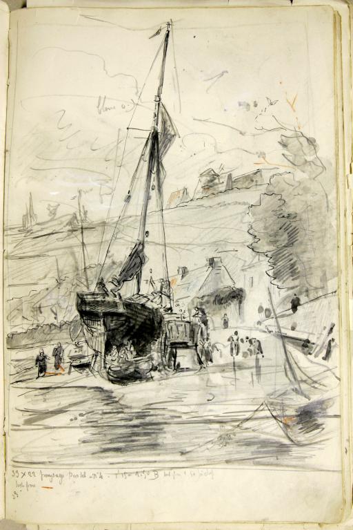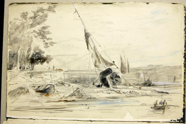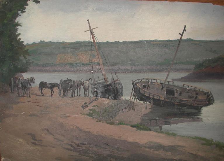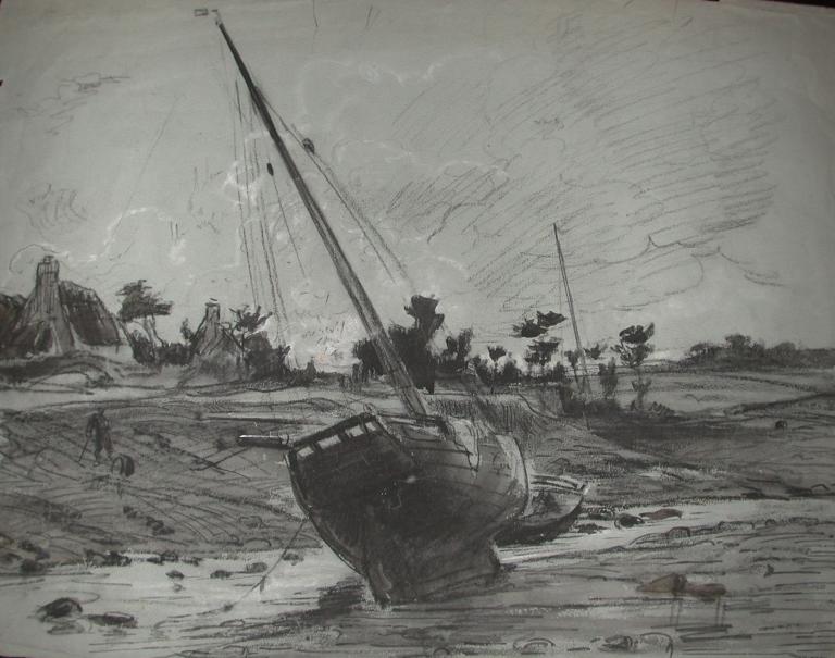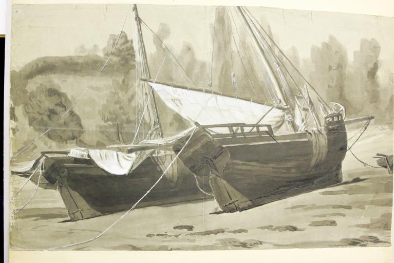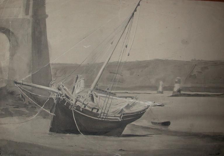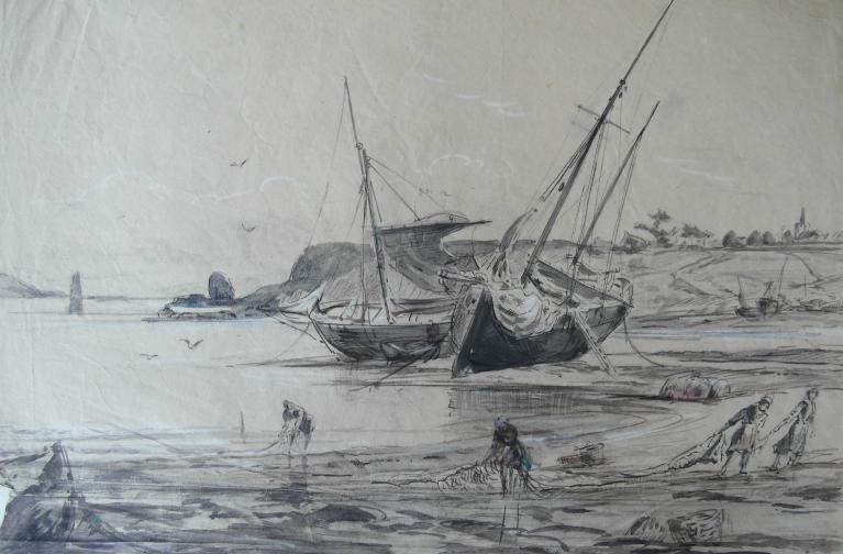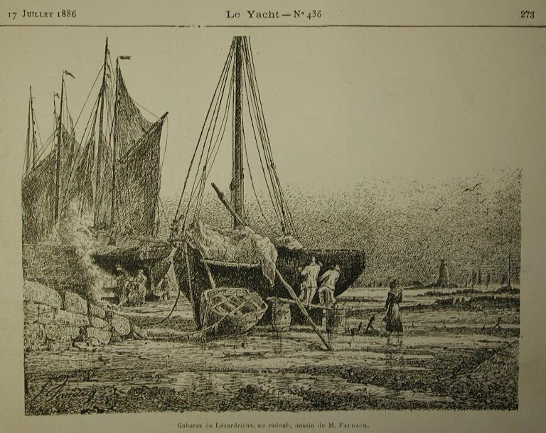 Louis-Marie Faudacq (1840-1916) prend son poste de receveur des douanes à Lézardrieux en mai 1868, où il restera jusqu’en 1883 avant son affectation à Tréguier. Véritable chroniqueur de la vie rurale et maritime du Trégor-Goëlo entre ces deux estuaires, son travail d’illustrateur auprès des revues "Le Yacht", créé en 1878, "l’Illustration", ou encore "La revue des Deux mondes" en font un témoin précieux des usages maritimes et agricoles de cette époque. Il représente une forme de passeur de cette culture littorale, où se transmettent des valeurs d’usages, l’appropriation des ressources de l’estran par une population paysanne, de la pêche des huîtres à la collecte du sable et du goémon, et des pratiques saisonnières de pêche à pied. Son attention précise du commerce maritime, du bornage et du cabotage, entre ces estuaires et les ports de la côte, offre un inventaire caractérisé des productions locales et des différents types de bateau, aujourd’hui disparus. Le dessin des gabarres à l’échouage témoigne des formes de ces "écraseurs de crabes", de l’architecture navale en pleine évolution du passage de la voile au vapeur.